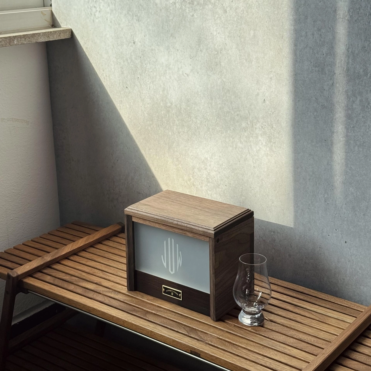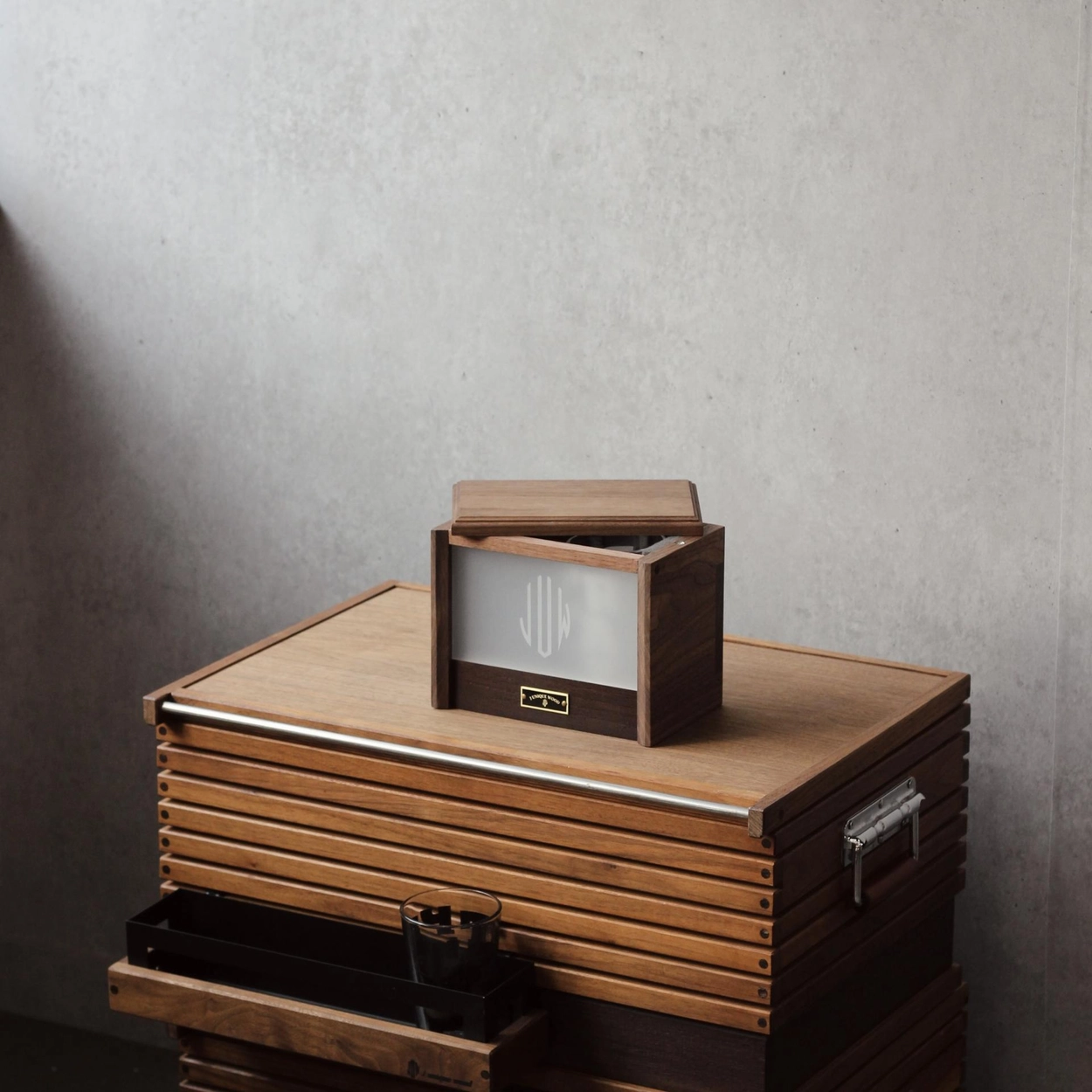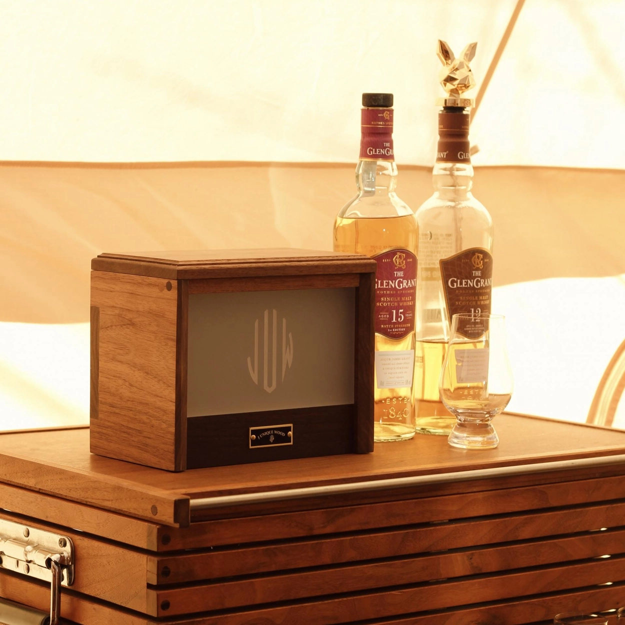 グラスボックスはウイスキーや小型ガラスを収納できるウッドボックスです。