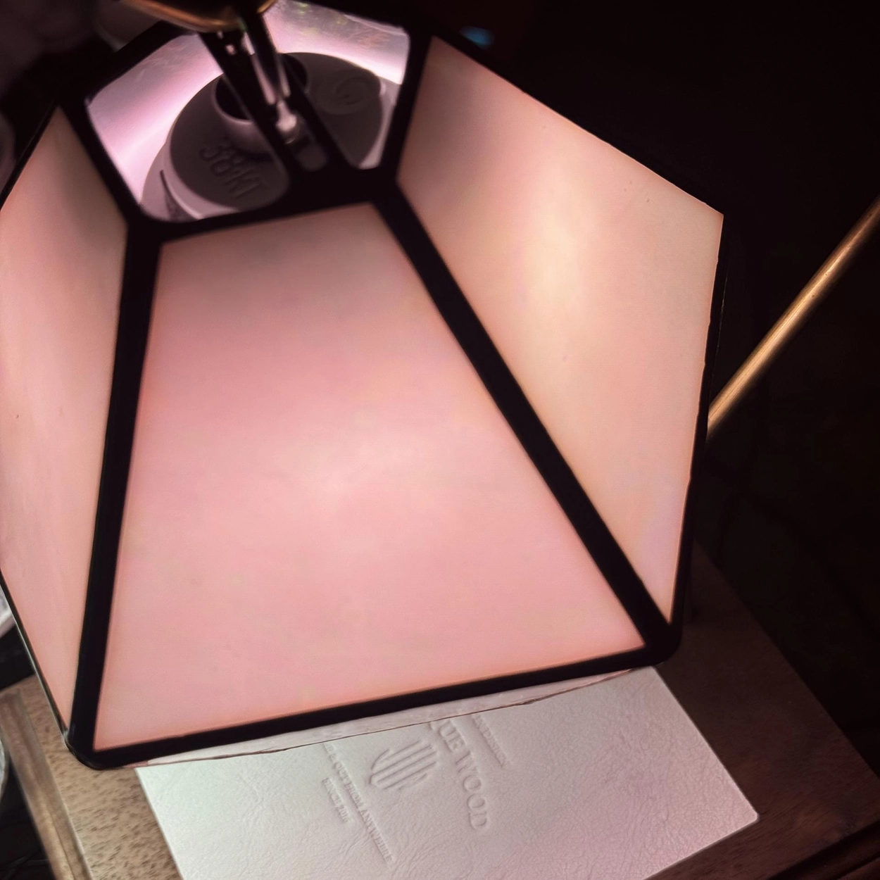 ハンドメイドシェードで、白に見えますが、光の角度に応じてほのかなオーロラのようにキラキラと輝きます。