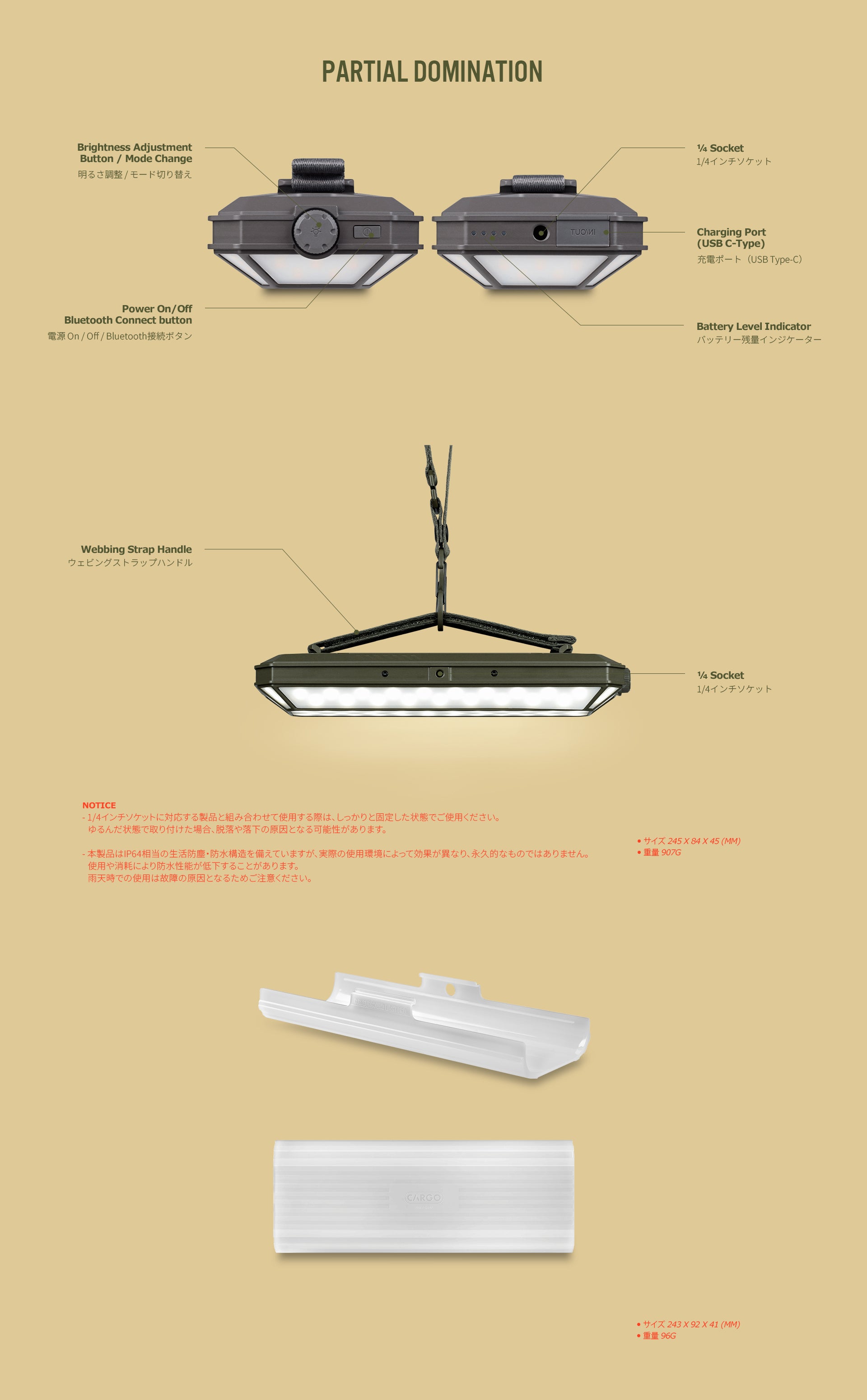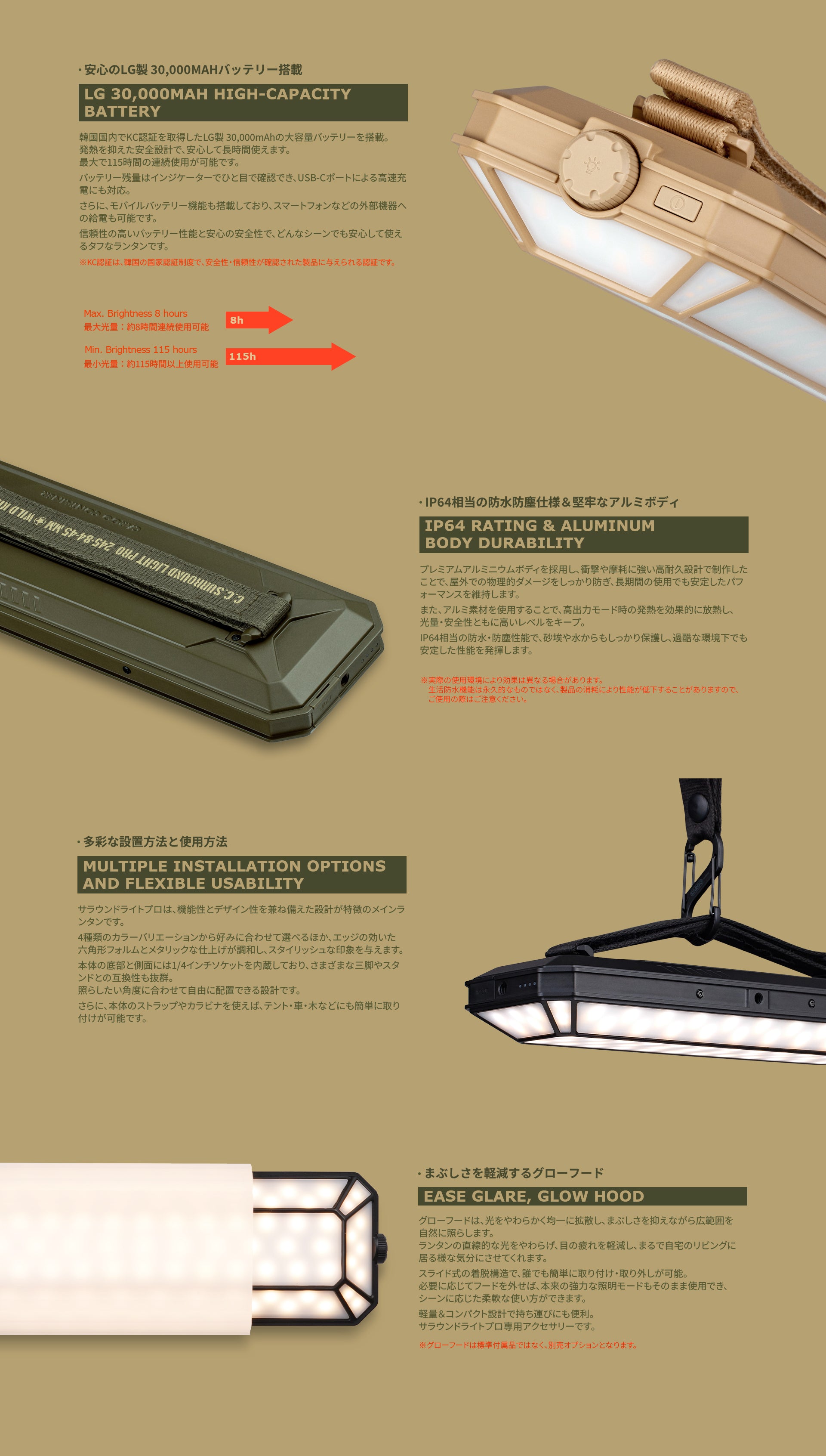 最大5400ルーメンの明るさで、サイト全体を照らす高出力モデル。